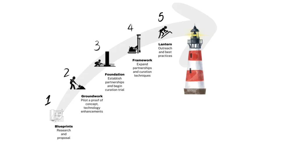 During the Foundation Phase, we begin collaborating with select data providers. This phase emphasizes building relationships, refining curation techniques, and establishing the first official collections. This work informs the development of key protocols and processes that will serve as the foundation for the project moving forward.